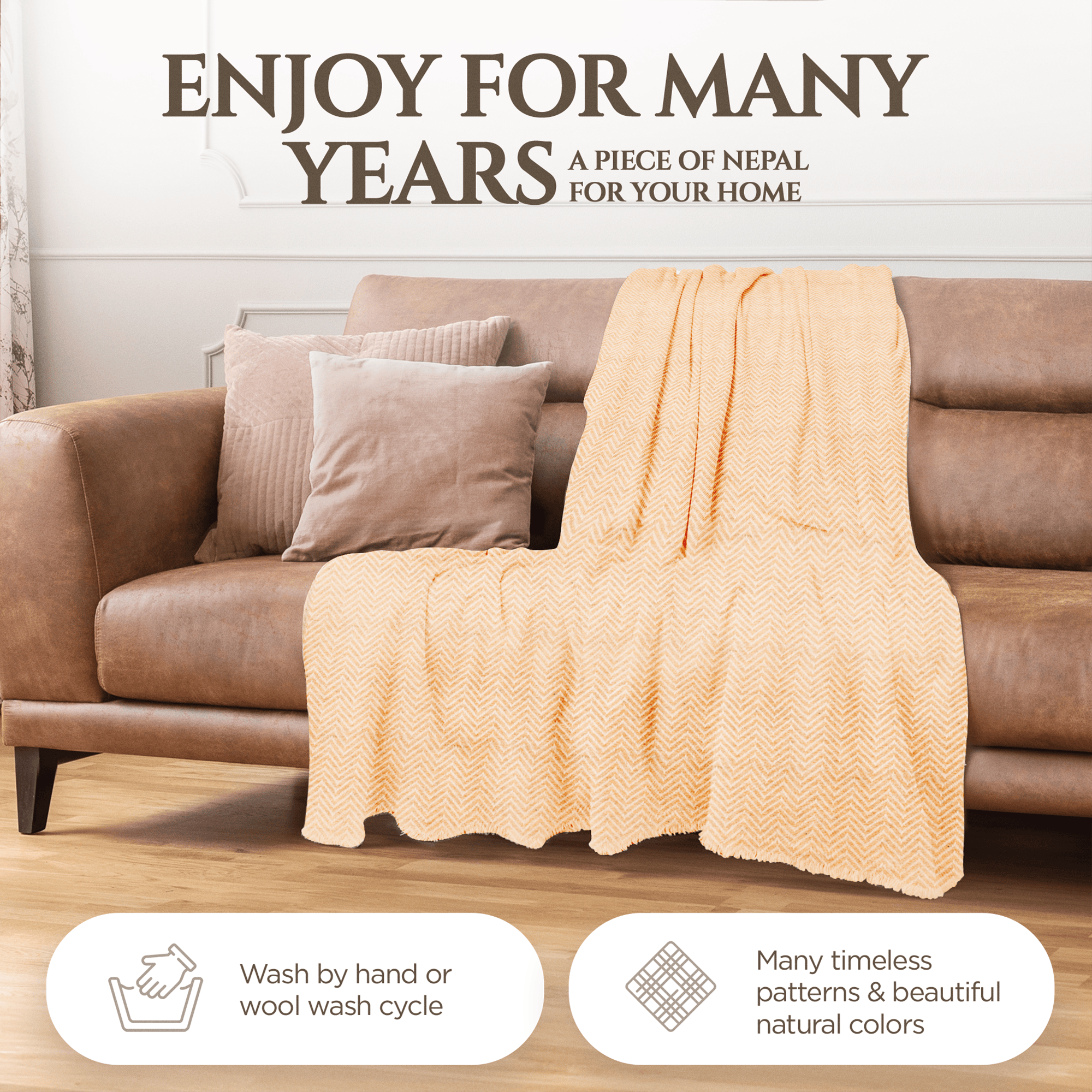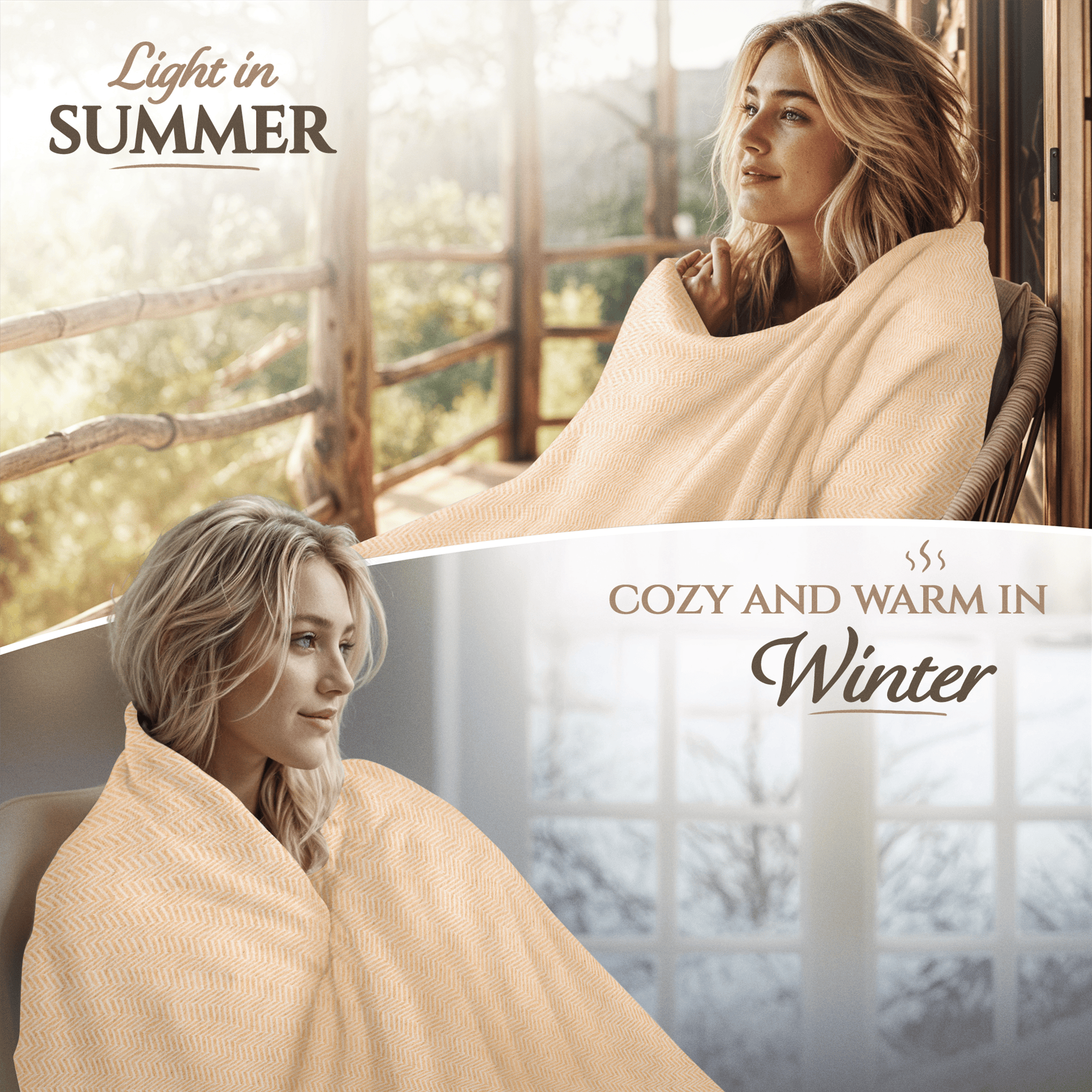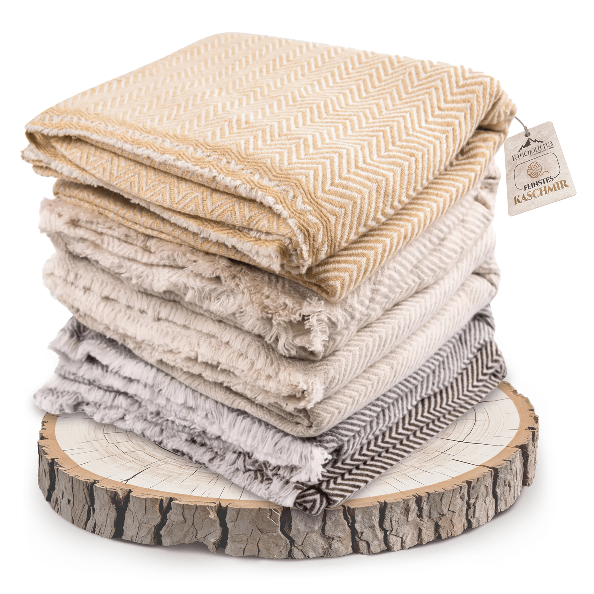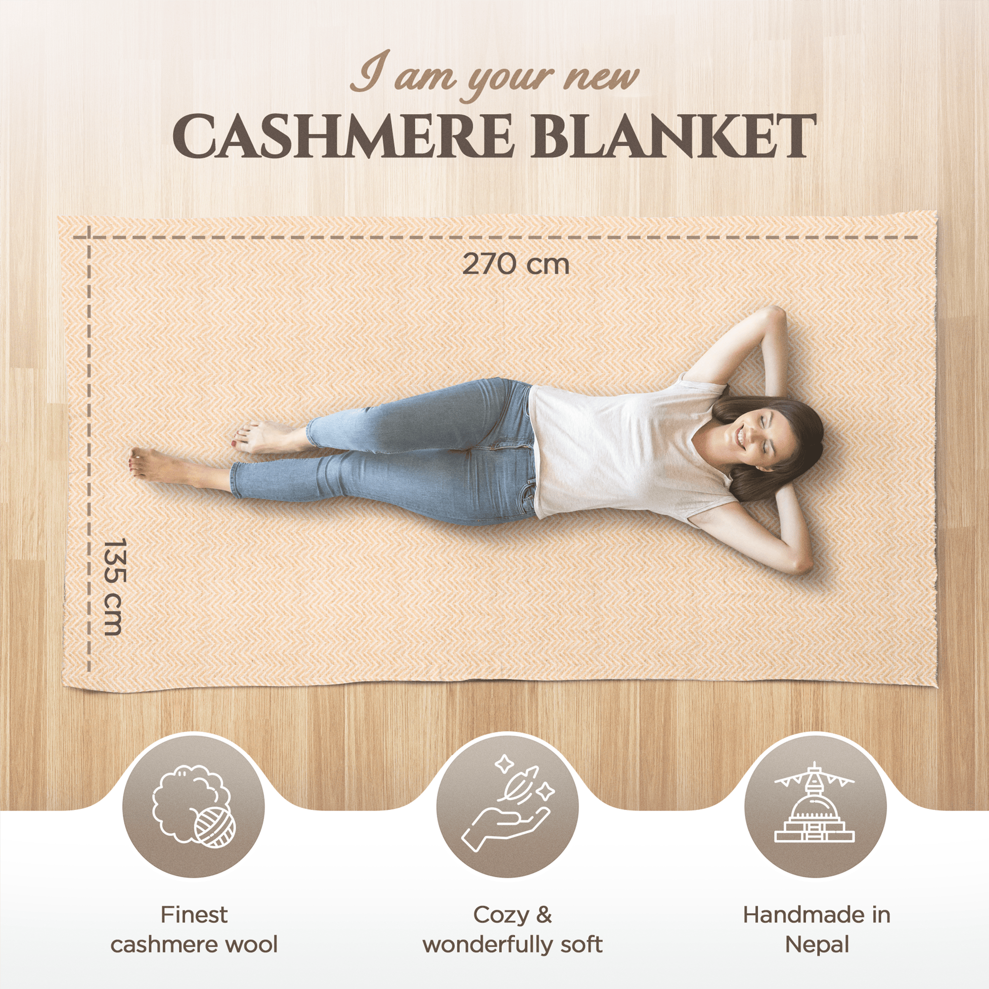 Coperta in cashmere marrone chiaro con motivo a grande spina di pesce