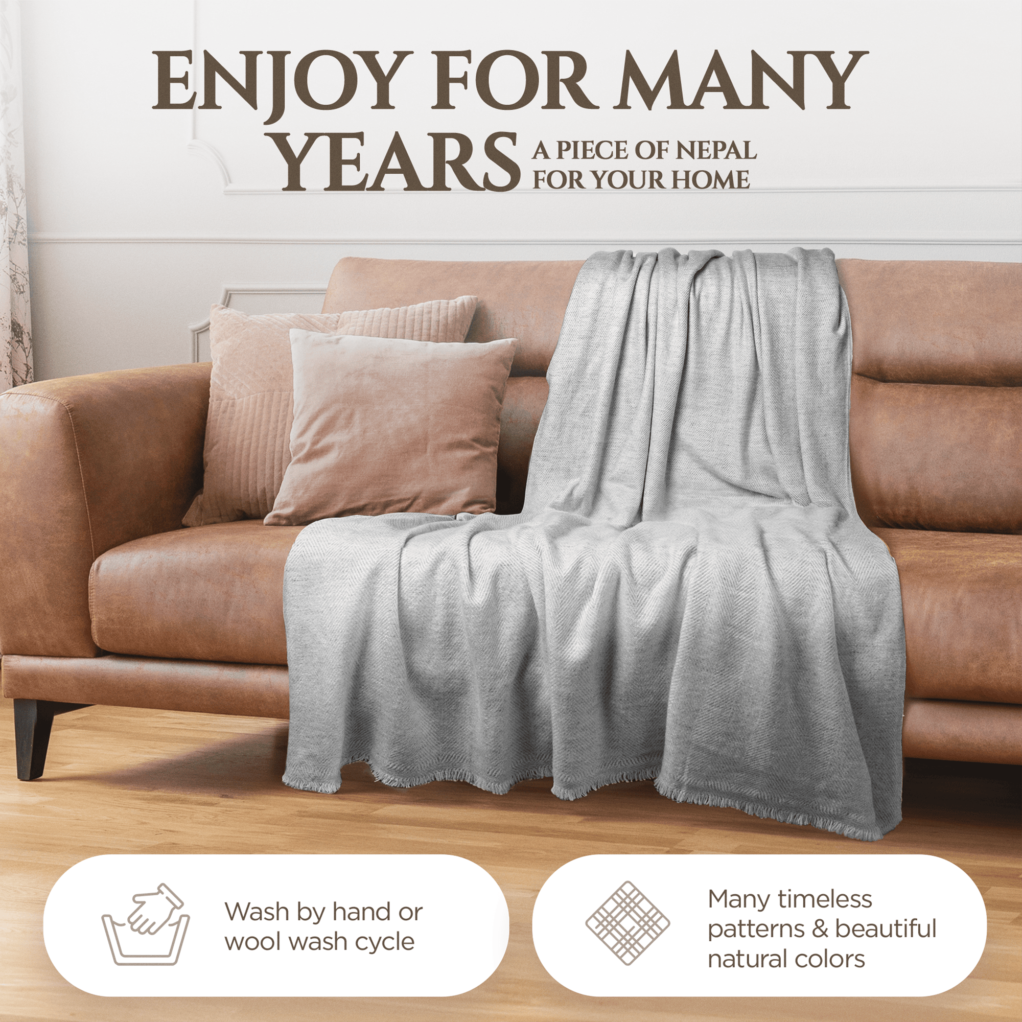 Prendersi cura dei tuoi prodotti in cashmere è facile se segui alcuni passaggi fondamentali. Si consiglia il lavaggio a mano o un lavaggio delicato in lavatrice con il ciclo lana con un detersivo delicato per lana. Quindi stendere il tessuto ad asciugare per mantenere la forma. Conserva con cura i tuoi articoli in cashmere in un contenitore pulito, asciutto e ermetico per proteggerli dalle tarme. Con la cura adeguata, puoi mantenere la bellezza e la morbidezza dei tuoi prodotti in cashmere per gli anni a venire. A Yanopurna siamo orgogliosi di offrirti la bellezza e l'eleganza della lana cashmere del Nepal. Le nostre coperte, sciarpe, scialli e cappelli fatti a mano non sono solo una risorsa per il tuo guardaroba, ma anche un simbolo di artigianalità e pratiche sostenibili. Ti invitiamo calorosamente ad innamorarti della nostra collezione e a sperimentare un pezzo della ricca cultura e bellezza dell'Himalaya.