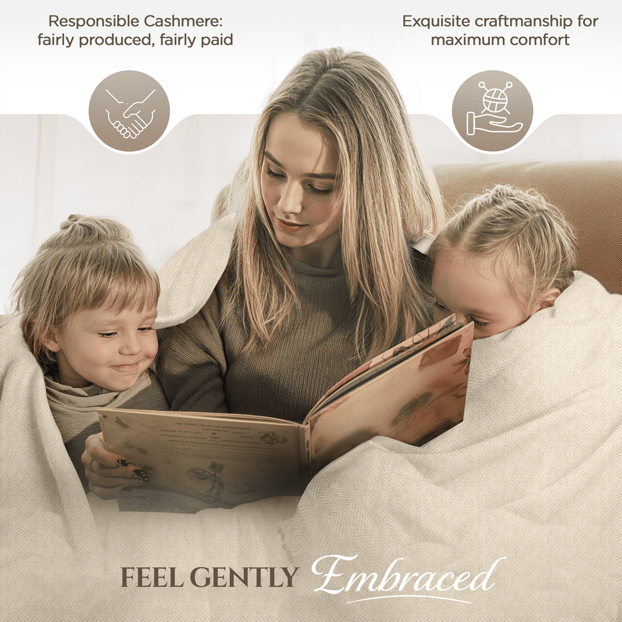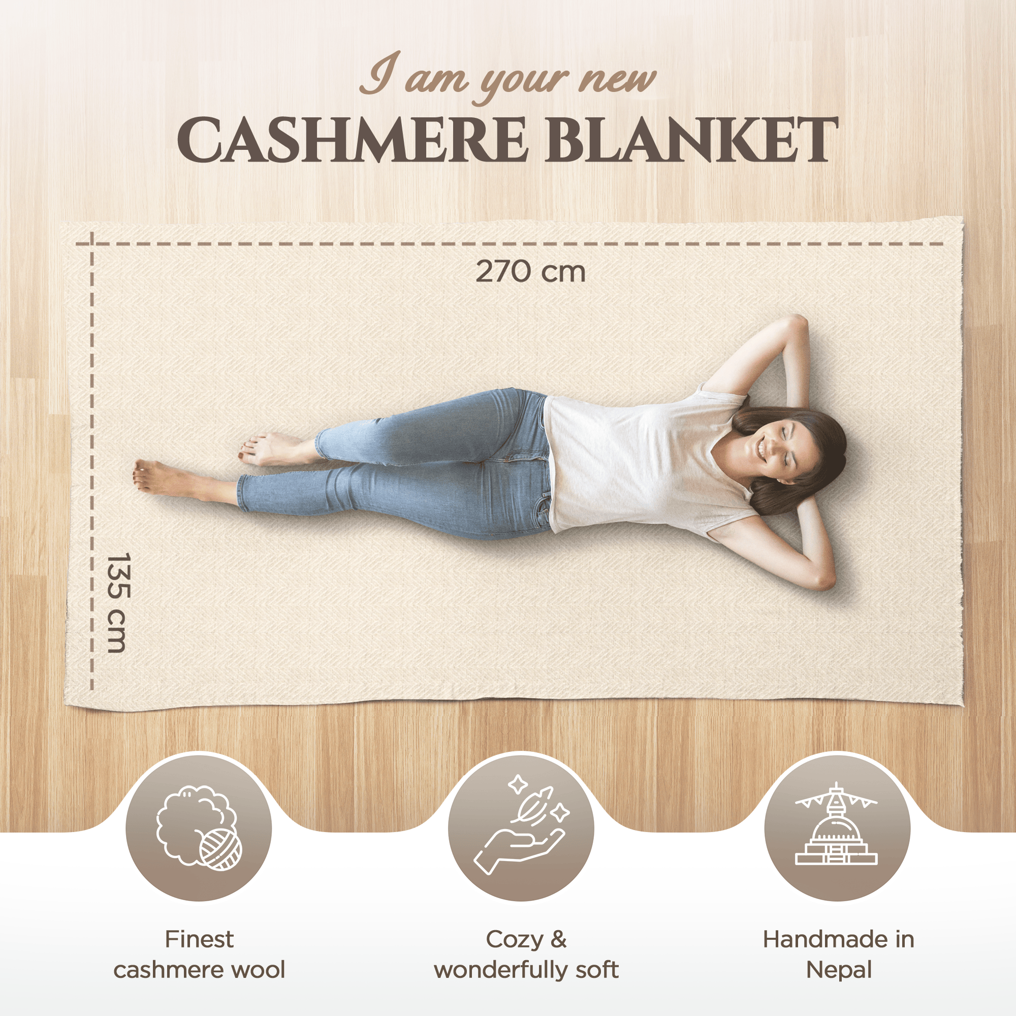 Coperta in cashmere bianca con motivo a grande spina di pesce