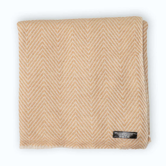 Sciarpa in cashmere beige dorato con motivo spinato medio