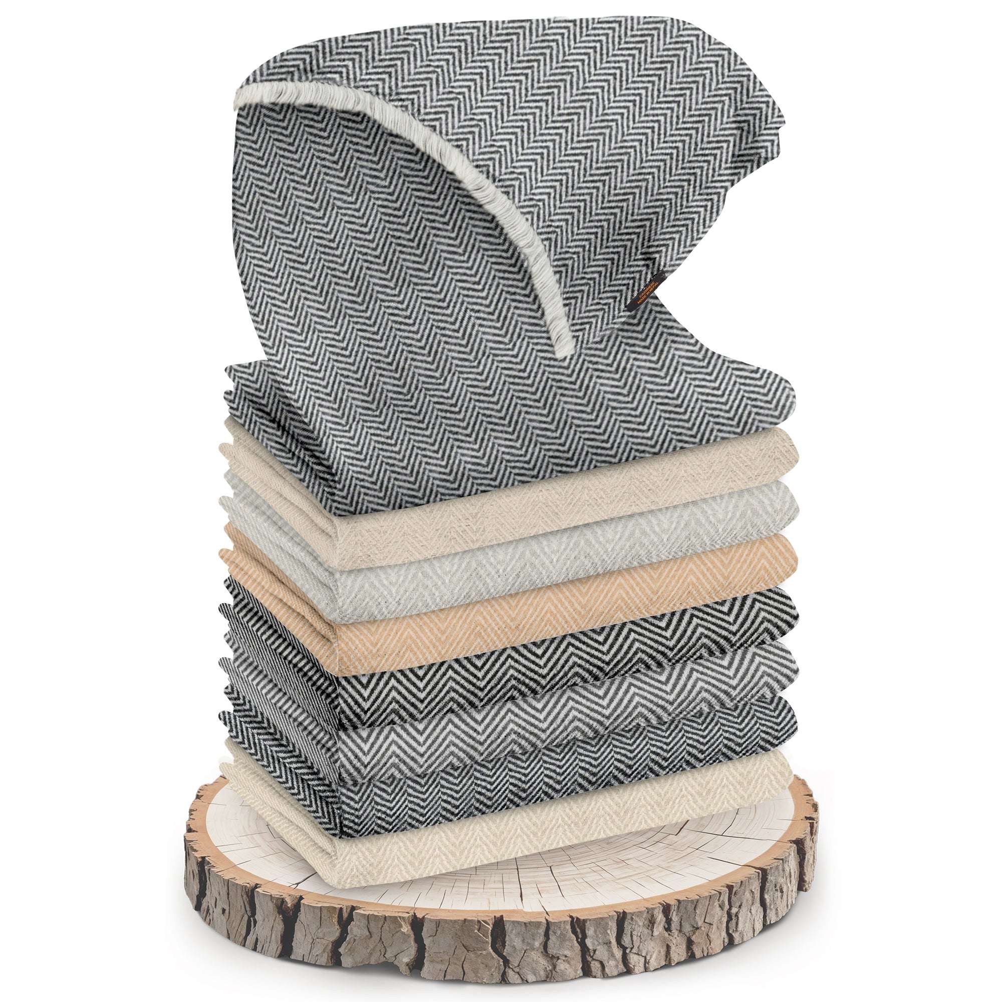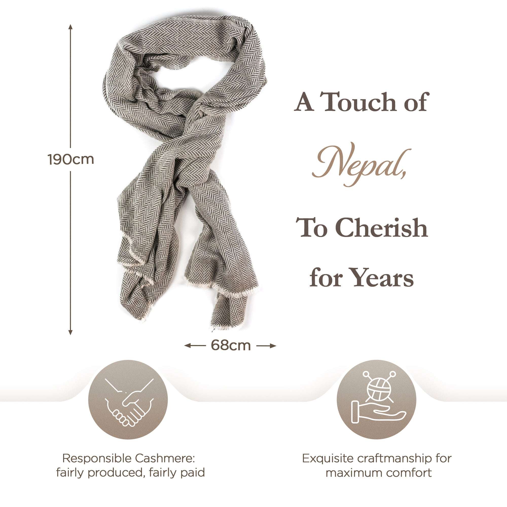 Sciarpa in cashmere grigio chiaro con piccolo motivo a spina di pesce