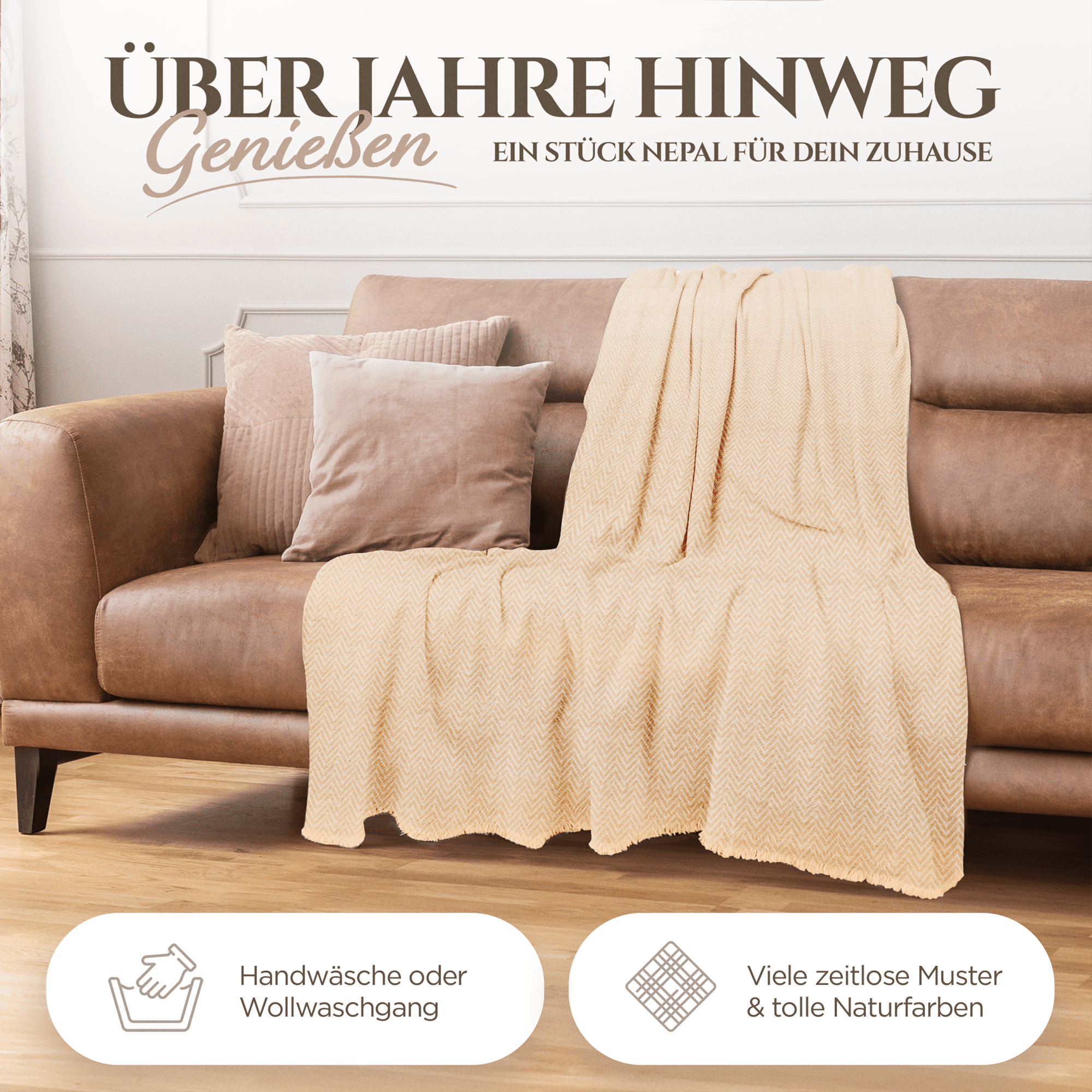 Coperta in cashmere beige dorato con motivo a grande spina di pesce