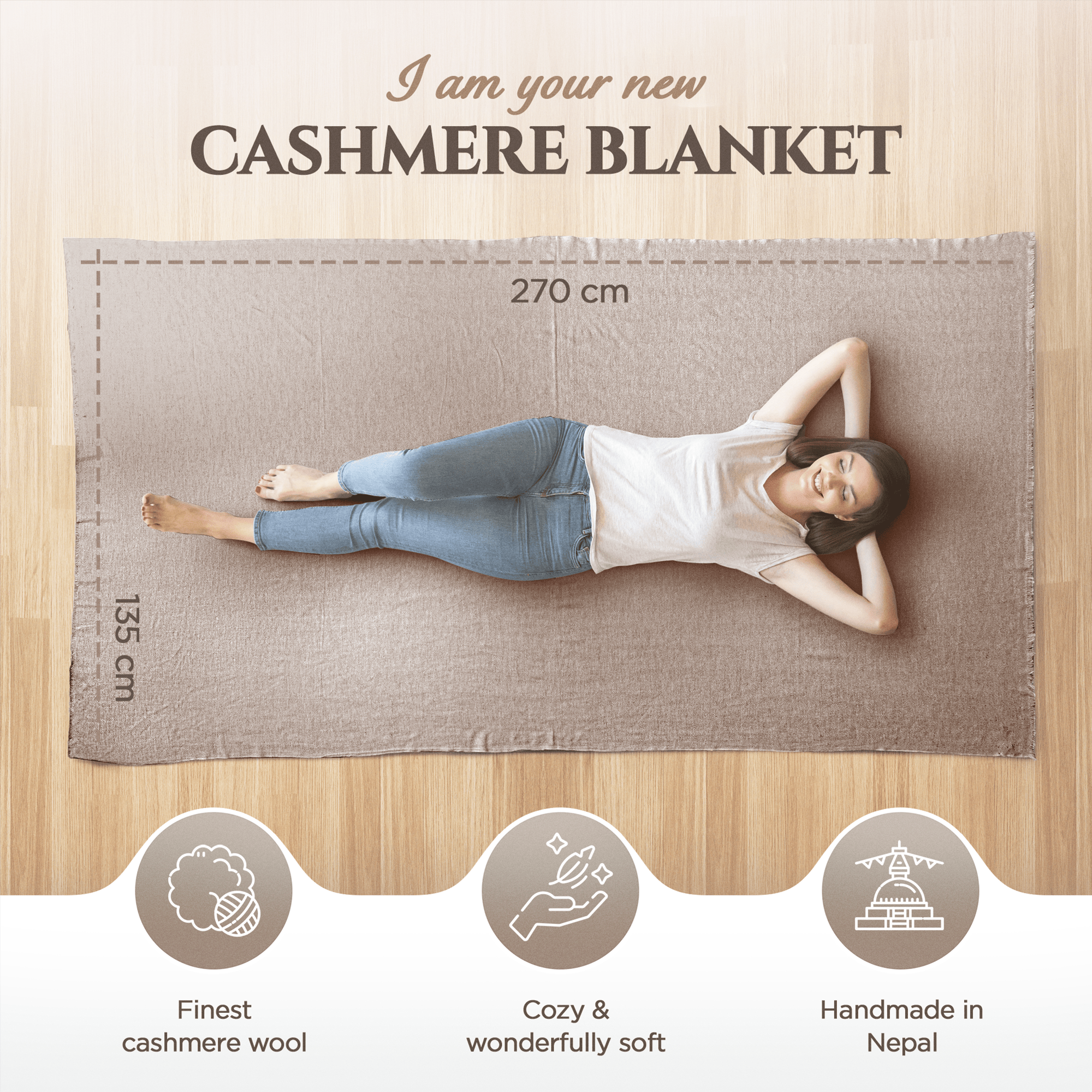 I nostri prodotti in cashmere provengono dalla splendida regione himalayana del Nepal. Lì, tra le maestose montagne, troverai la casa delle capre cashmere, che forniscono una delle fibre più preziose e morbide al mondo: la lana cashmere. Le tecniche tradizionali dell'artigianato del Kashmir sono state tramandate di generazione in generazione dagli artigiani locali del Nepal per garantire l'eccezionale qualità dei nostri prodotti.