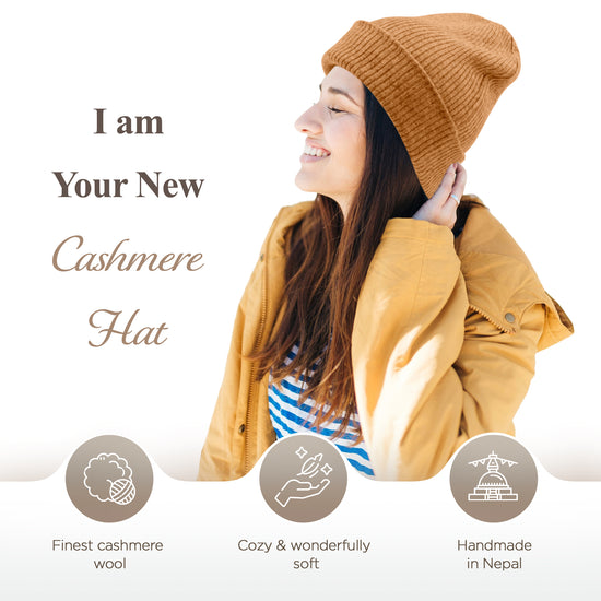 Berretto in cashmere a coste con risvolto - marrone chiaro
